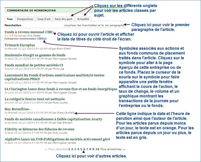 • Info-Fonds: section comprenant des nouvelles concernant des fonds précis.
