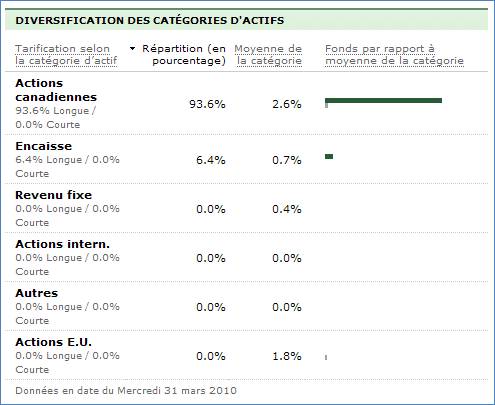 • Moyenne de la catégorie: moyenne pour chaque catégorie d’actif.