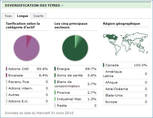 Cette section présente trois vues différentes de la diversification des avoirs du fonds.
