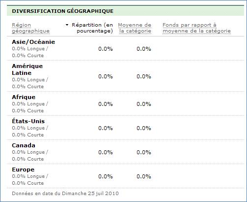 Cette section affiche la diversité des régions géographiques dans le portefeuille du fonds, en fonction de leur valeur marchande, classées selon le pourcentage de l’actif du fonds. Cette section affiche aussi le pourcentage des positions longues et courtes par région géographique.