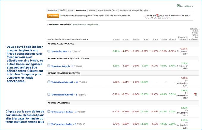L'onglet Rendement contient des renseignements au sujet des rendements annualisés et des rendements par période.