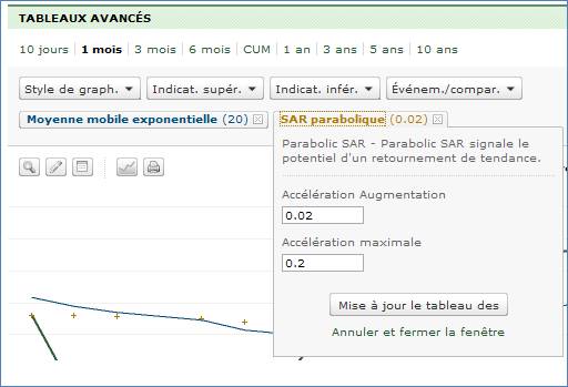 Cette section vous permet d’utiliser des outils descriptifs détaillés pour représenter le rendement d’un fonds sur diverses périodes sous forme de graphiques. Elle utilise des indicateurs techniques pour analyser les graphiques. Ces indicateurs techniques servent à déterminer des tendances, l’humeur des marchés et détecter divers signaux de vente et d’achat.